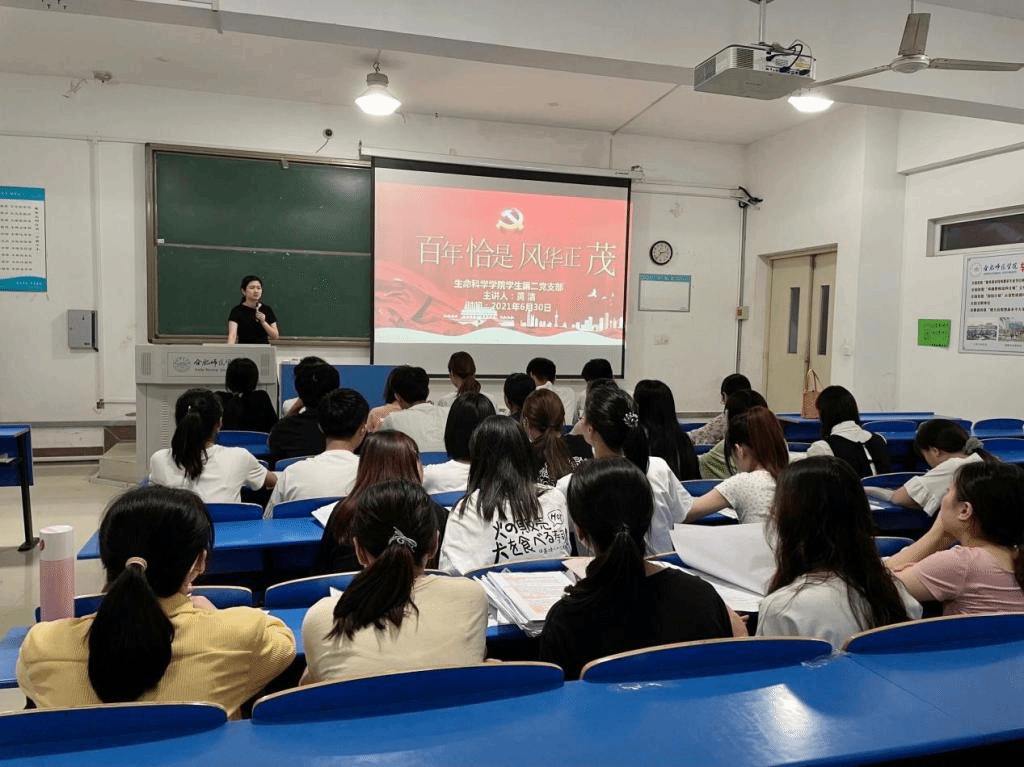 本网讯 风雨百年,青史可鉴。我党百年波澜壮阔的发展史,是一部不断学习总结、自我完善、自强创新的奋斗史。为了加强党史学习教育,2021年6月30日,生命科学学院学生第二党支部开展了以“百年恰是风华正茂”为主题的专题党课,党课由该支部书记黄洁主讲。