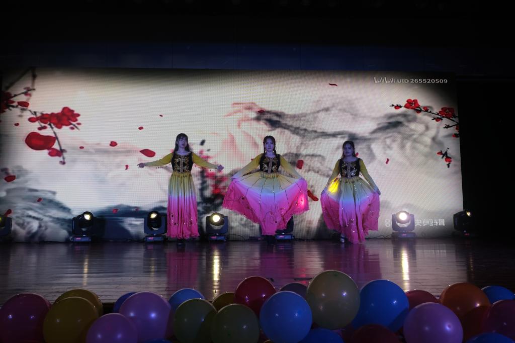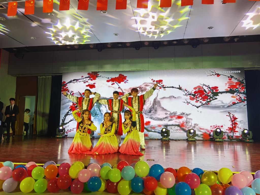 2021年是中国共产党建党100周年,历史的潮流用实力和真理告诉人们,中国共产党是人民心中最崇敬的党,节目《唱支山歌给党听》与朗诵《祖国颂》表达了同学们对中国共产党崇高的敬意和对祖国深厚的情感;一场灾难,让人疲惫不堪,但是在共产党的领导下中国人民紧紧相拥在一起,与病毒较量,小品《患难与共》再次重绘了抗疫期间的暖心故事;在白雪皑皑的天山脚下聚居着一个能歌善舞的民族,塔吉古丽·亚森和阿依谢姆古丽·努尔等同学献上的新疆舞蹈《麦西来普》和石明豪等同学演唱的《民族特色歌曲串烧》让我们身临其境,仿佛看到了他们在天山脚下生活的场景;而由赵晶晶和戚雨晨带来的相声《旅游记》用说学逗唱带我们又一次领略新疆的浩瀚沙海;十里画廊,雕梁绘栋绵延而去,廊畔河水幽碧,绿柳长堤,中国舞《牵丝戏》给观众以视觉上的冲击;节目《青瓷墨香》在书法中融入中西方乐器,传统与现代的碰撞,中西方文化的融合,更是别有一番风味在其中。晚会期间不仅有同学们的精彩表演,老师们也被作为嘉宾邀请上台演出。校团委姚瑶老师亢音高唱《这片海有我》点燃了现场的气氛;杨帆声情并茂演唱的《鸿雁》获得了同学们热烈的掌声和欢呼,歌曲结束后,杨帆带领少数民族同学一起为到场的领导老师们献上纯洁的哈达,以表达美好的祝愿。李万成与杨帆合作弹唱的《外面的世界很精彩》更是感染观众们一同参与其中;晚会在大合唱《爱我中华》的精彩演唱中完美落幕。舞台上的演出精美绝伦,舞台下挥舞着国旗的老师和同学们更是热情高涨。