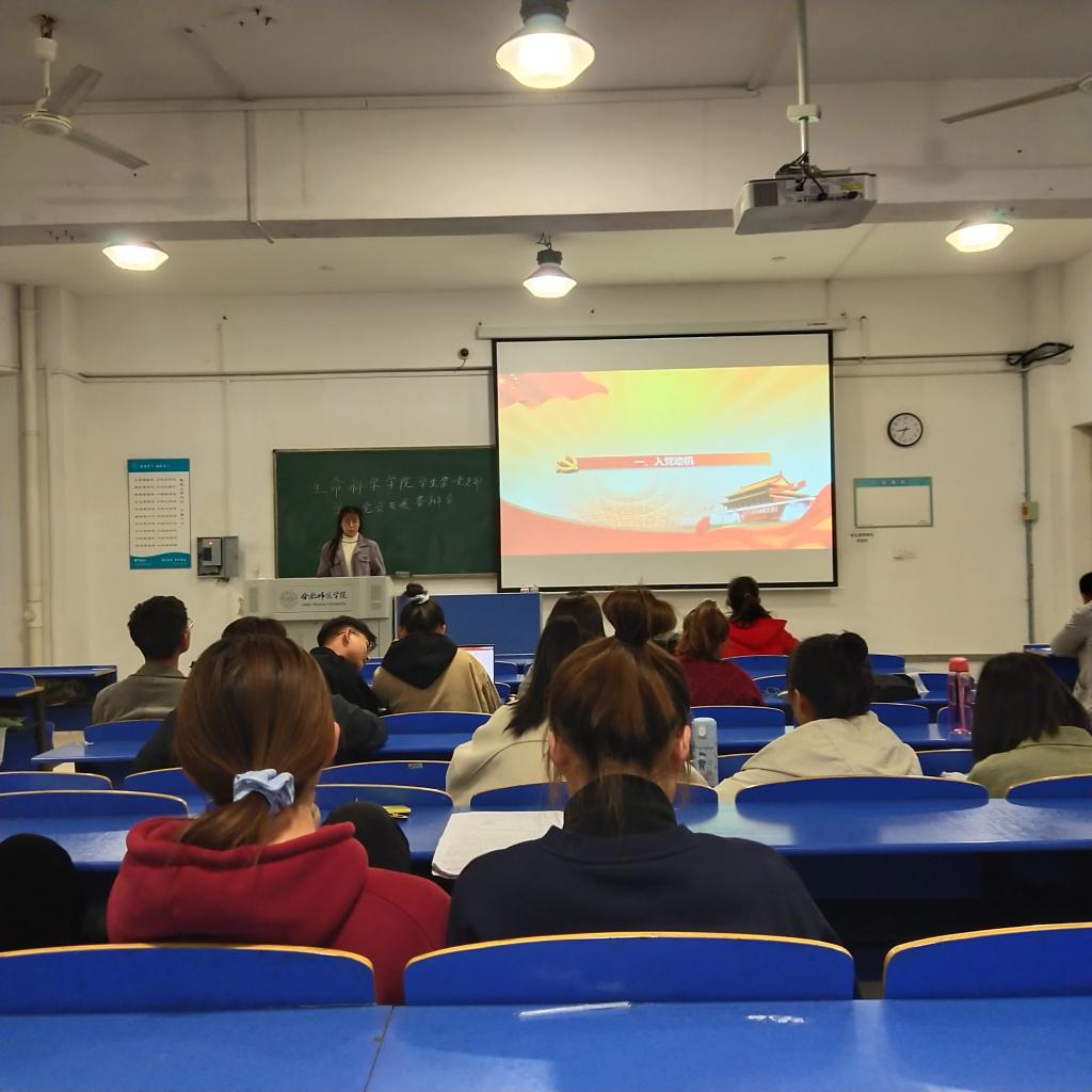 本网讯 2020年11月12日,生命科学学院三个学生党支部分别在行知楼1502、逸夫楼A101、逸夫楼A109教室举行学生党员发展对象答辩会。生命科学学院党委书记郭桃芬、党委委员孙娴以及各党支部书记、党员教师担任答辩老师。