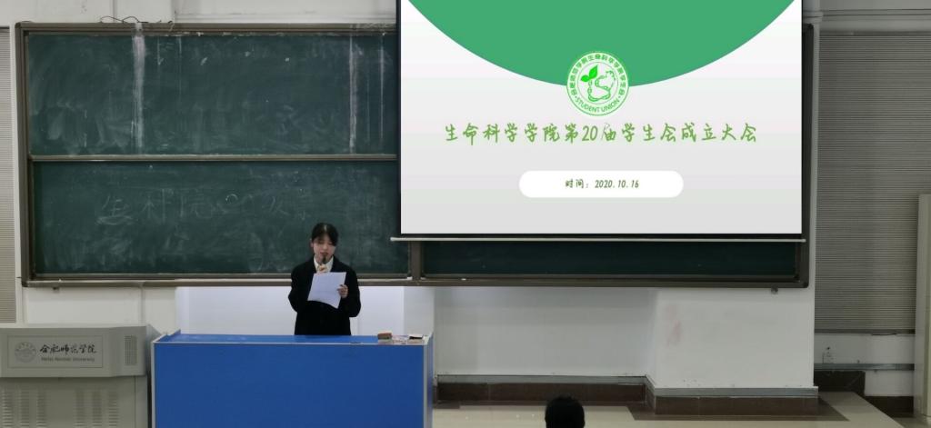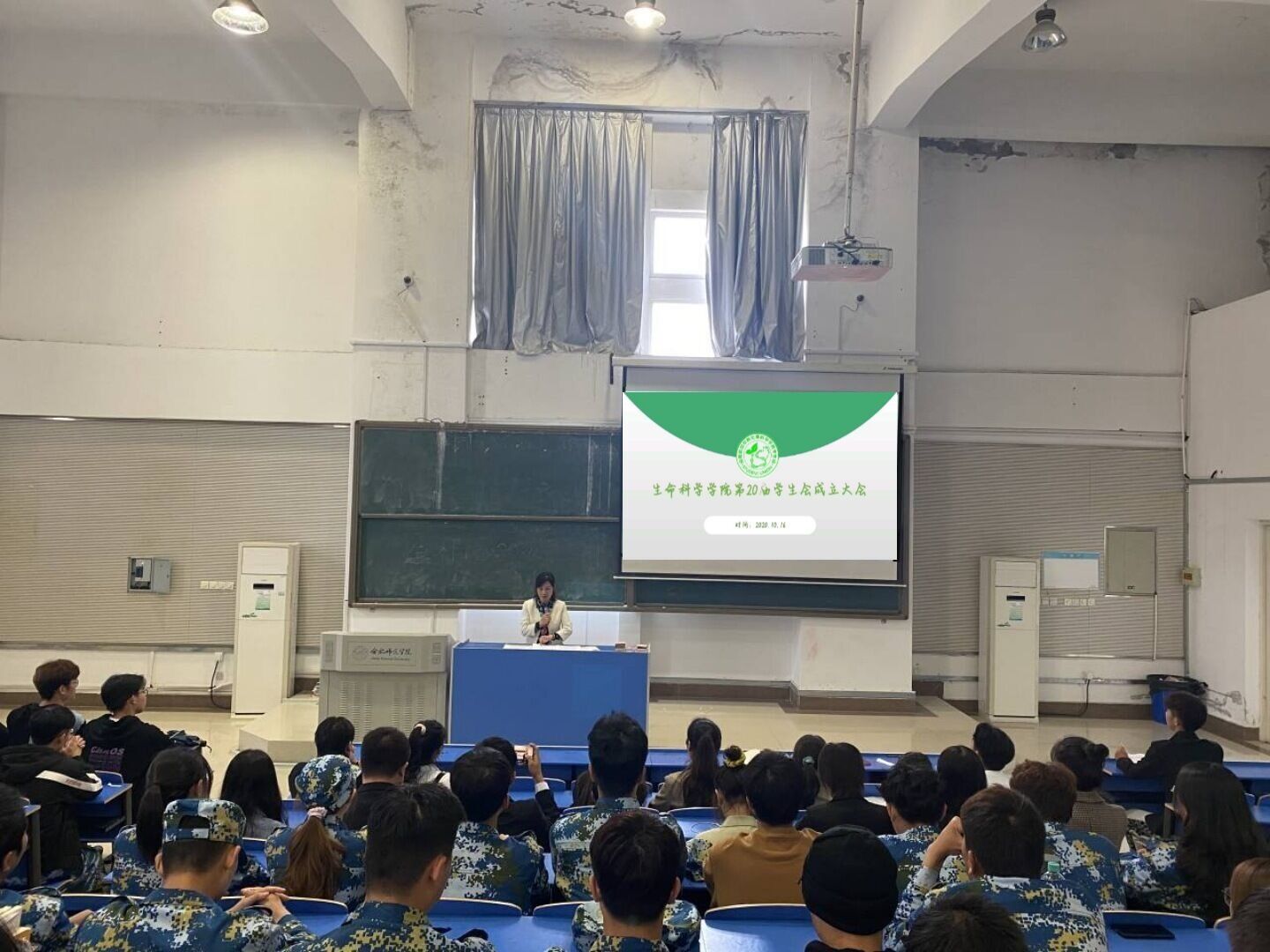 本网讯10月16日中午,生命科学学院在逸夫楼西阶四教室召开第二十届学生会成立大会。生命科学学院党委书记郭桃芬、分团委书记黄伟丽、2020级辅导员黄洁以及全体学生会成员参加了本次大会。会议由学生会文体部部长潘嘉伟主持。