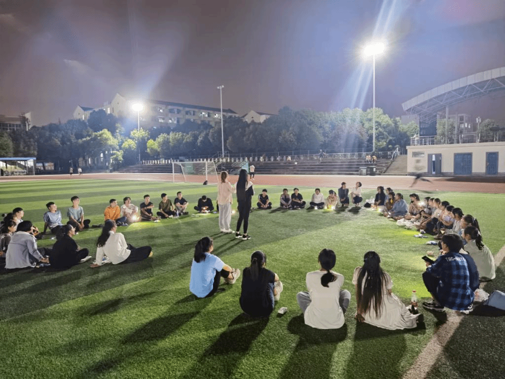 海上生明月,天涯共此时。在广阔夜空下,同学们围坐成心形,主持人用深情真挚的语言宣布了晚会的正式开始。