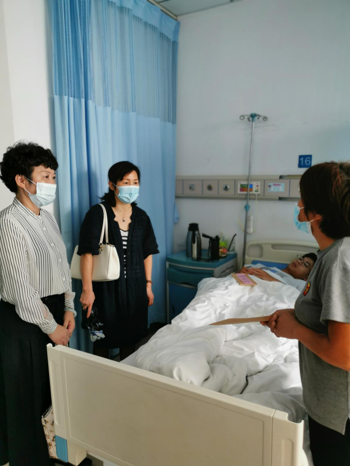余同学因病住院接受治疗。郭桃芬在得知这一消息后,立即找该生辅导员了解情况。在了解学生为建档立卡贫困户之后,立即联系学生工作处陆涛处长,协商前往医院看望学生。在医院病房,陆涛和郭桃芬向学生家长详细询问余同学的病情诊断和治疗情况,并分别代表学校和生科院送去了慰问金和深切关怀。勉励余同学安心治病,消除经济顾虑,正视目前所面临的困难,树立信心,积极治疗,争取早日以健康的体魄和积极的心态重返校园。余同学及其家长对学校领导老师一行的看望慰问深表感激。