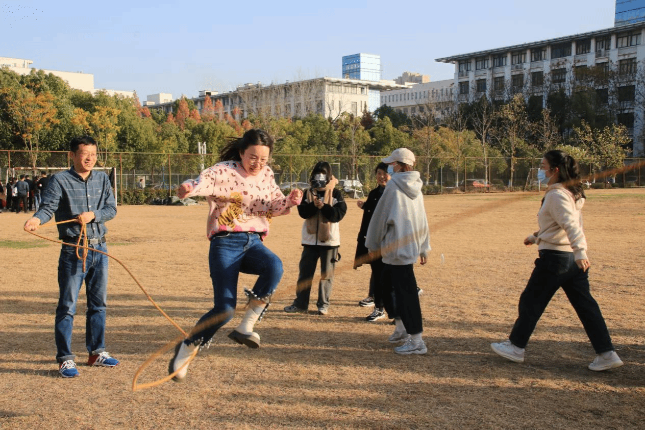 本次教职工趣味运动会共设立三个比赛项目:跳大绳、拔河、抢板凳。活动项目以其趣味性、娱乐性和广泛参与性,受到广大教职工的喜爱和积极参与。活动现场,广大教职工热情高涨、奋勇争先参与到各项比赛中,充分发扬奋勇拼搏、团结协作精神,此起彼伏的掌声和欢笑声充盈了整个运动场。