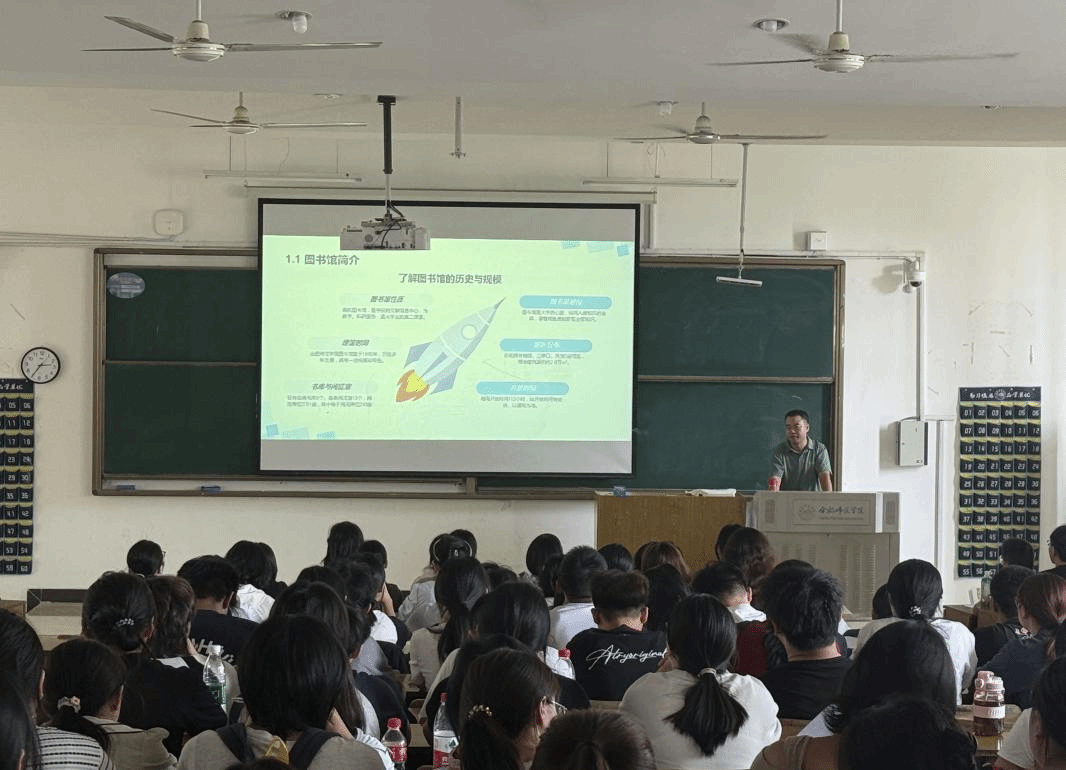 此外,学院还联合图书馆开展专项培训,图书馆杨老师围绕 “馆藏资源检索、电子数据库使用、借阅流程、自习空间预约”等内容进行讲解,并组织新生现场实践操作,帮助新生掌握高效利用图书馆资源的方法,为后续专业学习提供“资源支撑”。