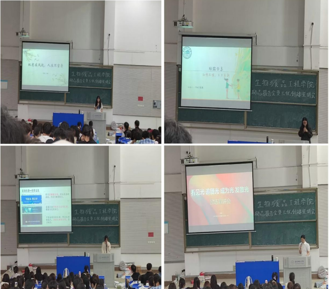组织安排国家奖学金获得者戚雨晨,国家励志奖学金获得者常桐和李露露、全国大学生生命科学竞赛一等奖获得者何璐四位同学,给mile米乐集团官网2022级全体学生作了一场励志报告,她们结合自身学习经历从如何过好大学生活、找准努力方向、常怀感恩之心等方面,引导学弟学妹们自立自信自强,为未来积聚力量,为达成目标创造条件,创造属于自己的美好未来。