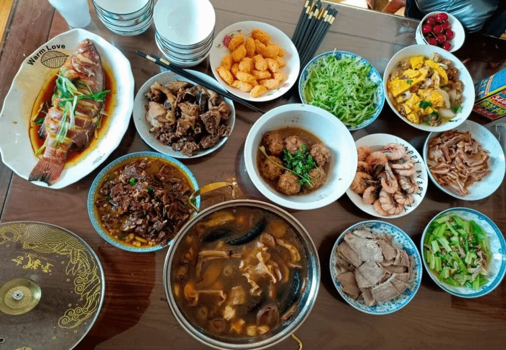 “欢聚一堂享美食”赛道中高潇同学的年夜饭给大家送来“一年顺风又顺水”的新年祝福;李敬娜同学不仅介绍了家中年夜饭的寓意,还展示了自己参与年夜饭制作的过程。