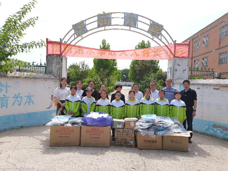 本网讯 “七一”前夕,生命科学学院党委书记郭桃芬、副书记杨娜、副教授袁华玲和朱勇以及党政秘书黄文婷和团委书记黄洁赴阜阳市颍东区王庄村看望我院驻村工作队李万成同志,慰问当地汪庙小学建档立卡学生并举行“行知学堂”挂牌仪式。