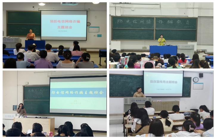 此外,辅导员们通过班级QQ群和微信群实时转发校保卫处发布的《锦绣派出所-每日电诈警情通报》、《锦绣派出所-警方通报-简要案情》等宣传材料;通过走访宿舍,检查学生安装国家反诈APP情况以及是否完成“四个必须”;利用谈心谈话,了解学生日常的消费情况和思想动态,及时发现安全隐患并解决问题;班委利用晚自习时间,在班级宣读《mile米乐集团官网保卫处反电信网络诈骗警示通报》,加大反诈骗知识宣传,并通过拍摄反诈骗话剧宣传视频,进一步提高同学们的反诈意识。