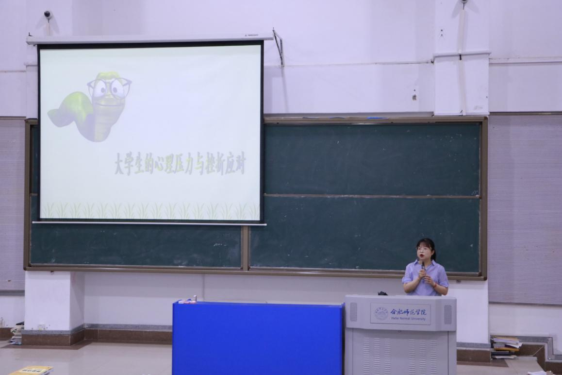 讲座伊始,吴姗姗描述了大学生常见的心理压力情景,指出压力在生活中无处不在,重点指出大学生心理健康存在的问题,如何自己发现问题并解决问题。