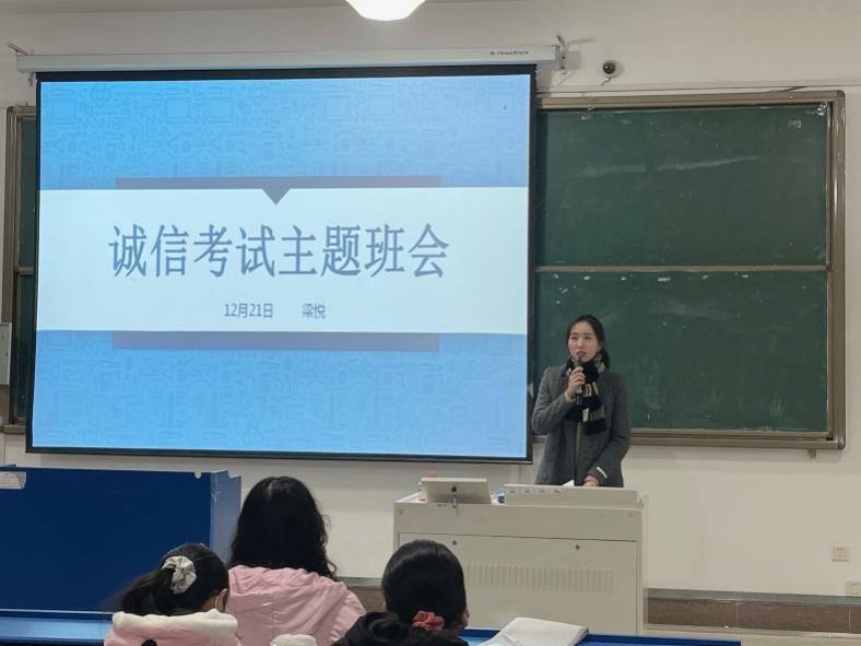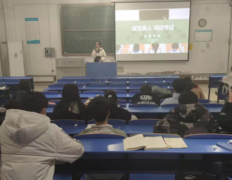 班会中,辅导员向同学们强调诚信考试的重要性,引导同学们以积极的心态备战应考,严肃考试纪律。并带领大家学习学生手册上有关考试违规的相关管理办法和条例(《国家教育考试违规处理办法》、《mile米乐集团官网学生考试违规处理》等),组织签订《诚信考试承诺书》。