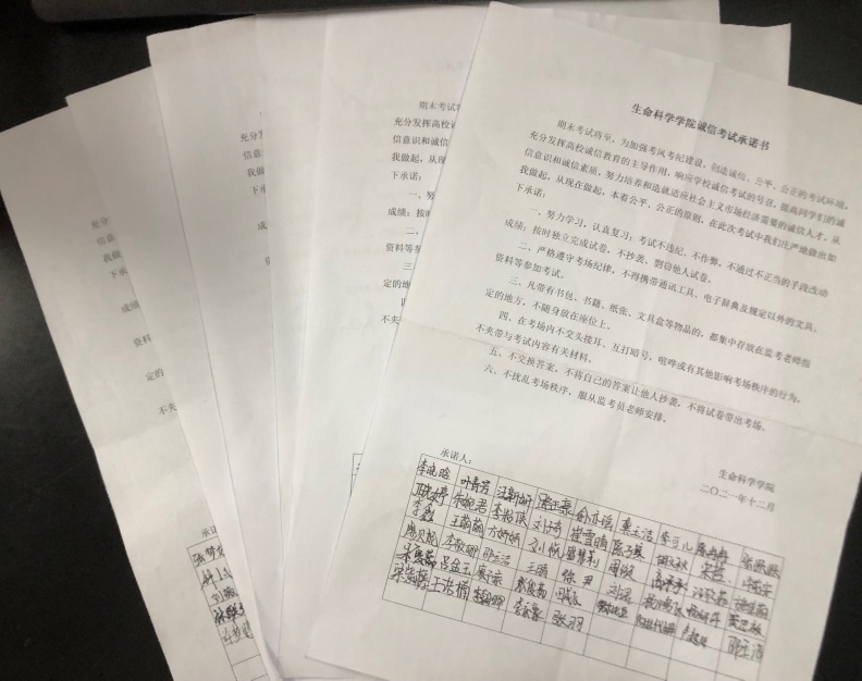 诚信是中华民族的传统美德,是一个人的立身之本,生命科学学院把诚信考试作为思想道德教育的重要内容,将诚信教育与学风建设相结合,进一步增强学生诚信意识,培育诚信人才。(生命科学学院:梁悦)