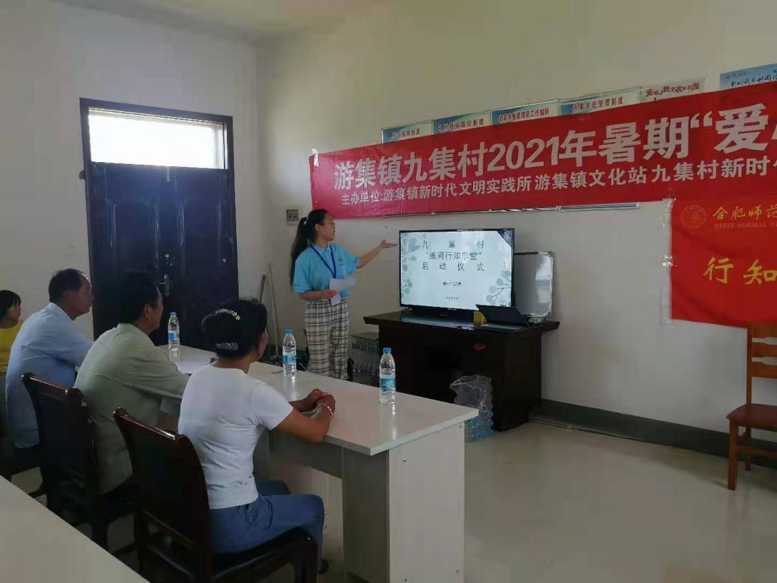 7月10日,mile米乐集团官网生命科学学院“练河行知学堂”正式开班。来自生命科学学院的5名小先生王赛男、王欣雅、吴双、徐莉平和徐怡在安徽省宿州市灵璧县游集镇文化站九集村举行了开班仪式,九集村党总支委员、妇联主任、新时代文明实践站负责人等领导代表共同出席了开班仪式。