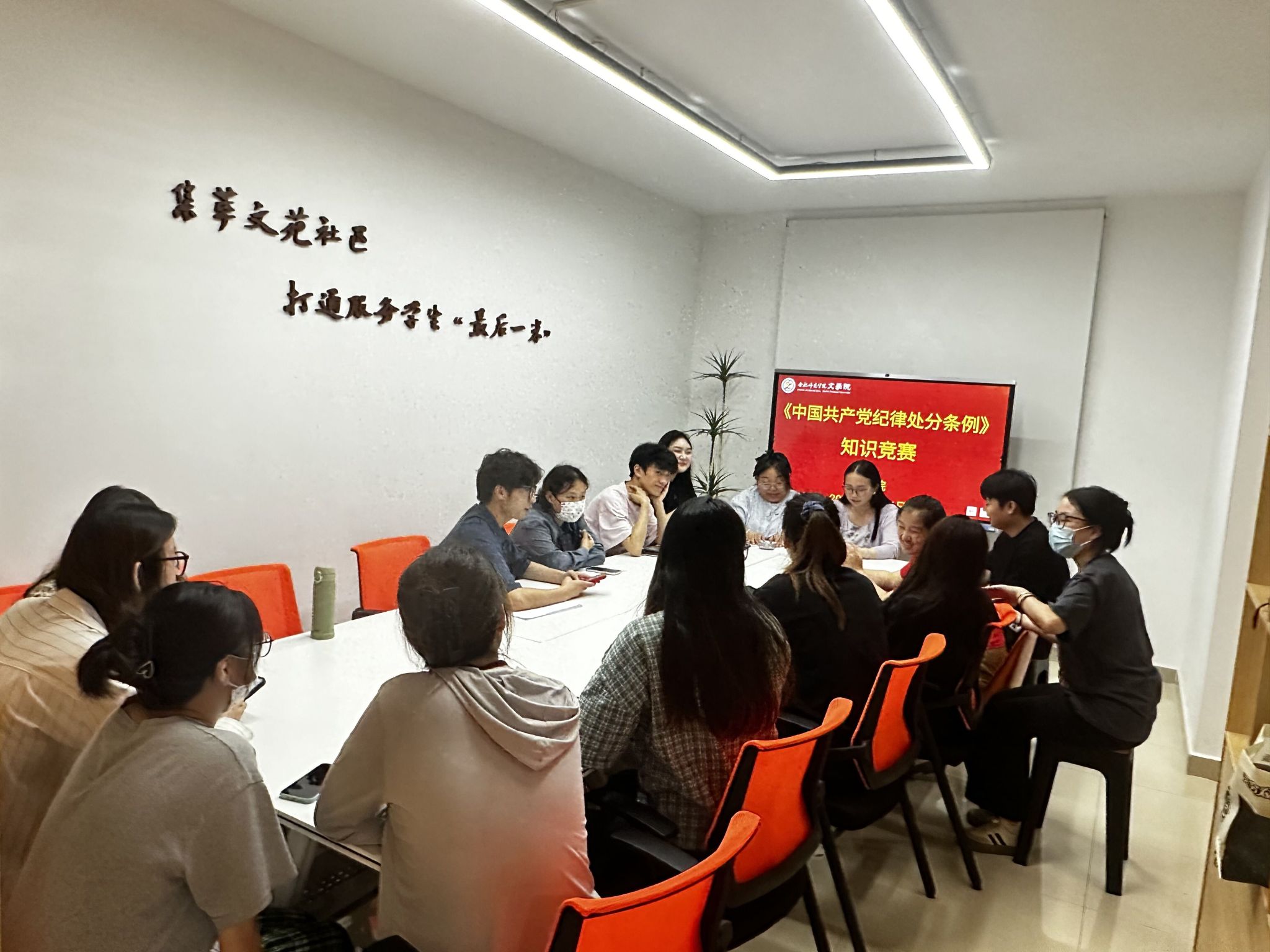 为扎实开展好党纪学习教育,加强学生党员对《中国共产党纪律处分条例》的学习和理解,引导和帮助学生党员提高党内纪律意识,5月26日晚,3003新葡官方网站学生第四党支部在集萃文苑社区组织开展《中国共产党纪律处分条例》知识竞赛的主题党日活动。