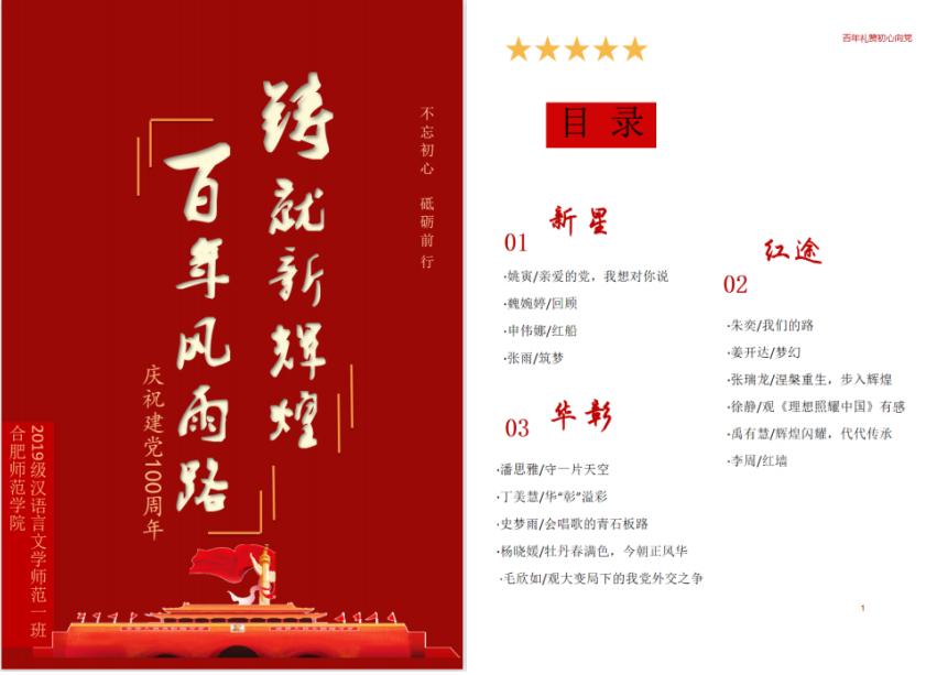 为庆祝中国共产党成立100周年,时刻牢记“感党恩、听党话、跟党走”,发挥专业特长,展示大学生党史学习教育学习成果,3003新葡官方网站2019级汉语言文学(师范)专业编写出版党史学习教育专题班刊。