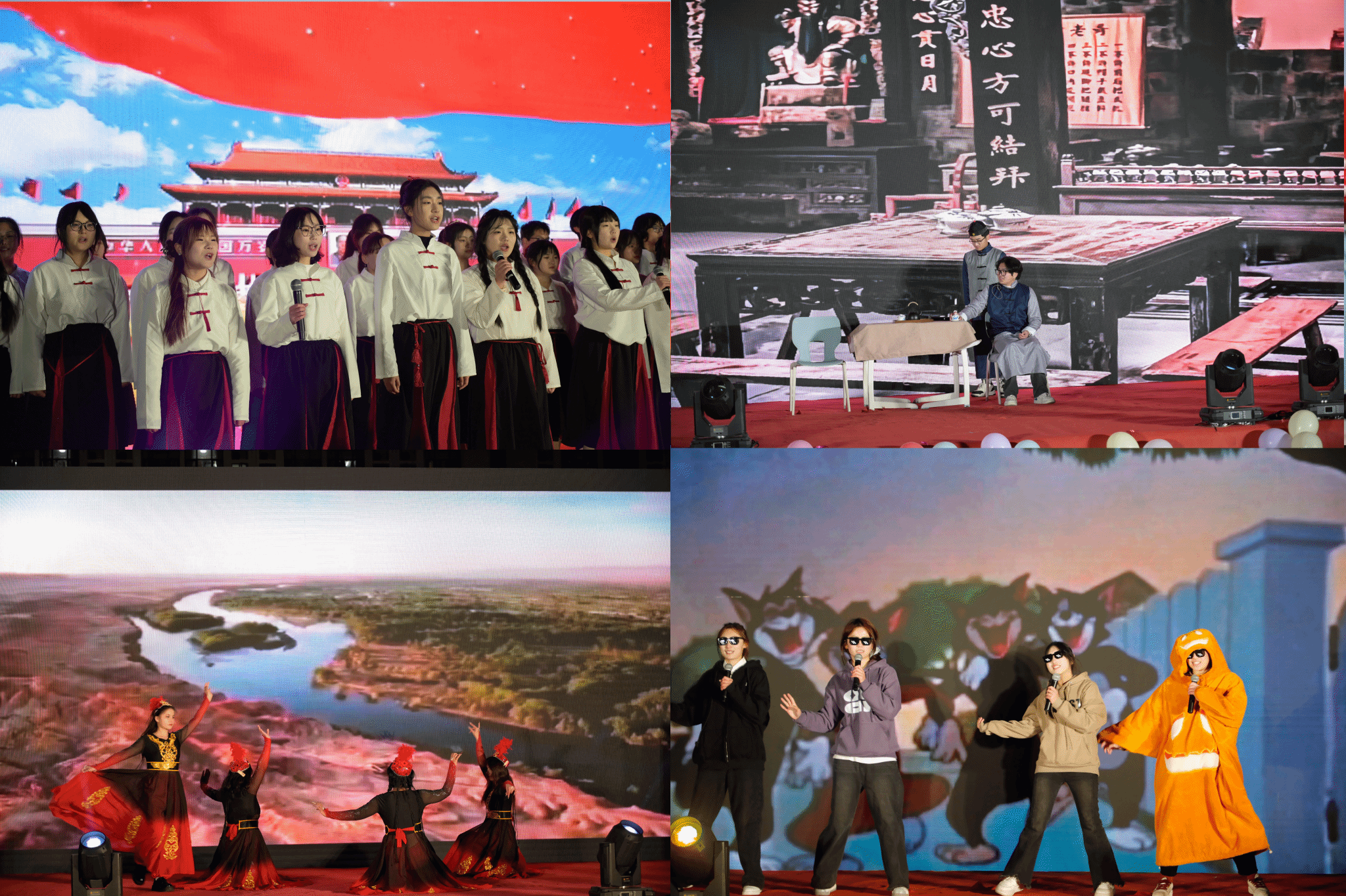 跨越新元,奔赴新愿,灯火辉煌的晚会舞台,诉说着文院学子回望过去的担当与实干,回响着展望2025年的祈愿与憧憬。乙巳新启、文院新韵、展耀新程,3个篇章拉开3003新葡官方网站元旦迎新晚会的精彩大幕。话剧、朗诵、舞台剧、器乐演奏、舞蹈、歌曲串烧等节目轮番上演,异彩纷呈的视听盛宴掀起现场阵阵热潮。话剧《字正腔圆》铿锵有力,古典舞《红马》意蕴悠长,大合唱《万疆》更是余音绕梁、气势磅礴。一幕幕生动的表演,一幅幅火红的画卷,文院学子用心、用情、用力传递着对祖国的无限热爱、对生活的无限热忱和对时代追梦的无限憧憬。