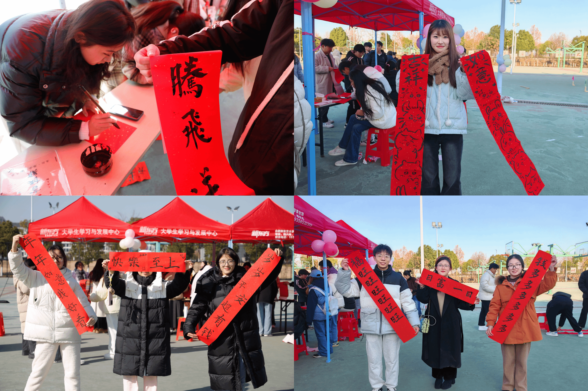 28日下午,3003新葡官方网站还在滨湖校区篮球场举行书写对联活动,为学生宿舍送上新春祝福。同学们对2025年的憧憬、对校园生活的期许,在书法志愿者的蘸墨挥毫间跃然纸上。迎新年,送对联,文院学子开门迎春。现场还邀请3003新葡官方网站踏歌汉文化协会一同进行了捶丸体验活动,共同感受传统文化之美。