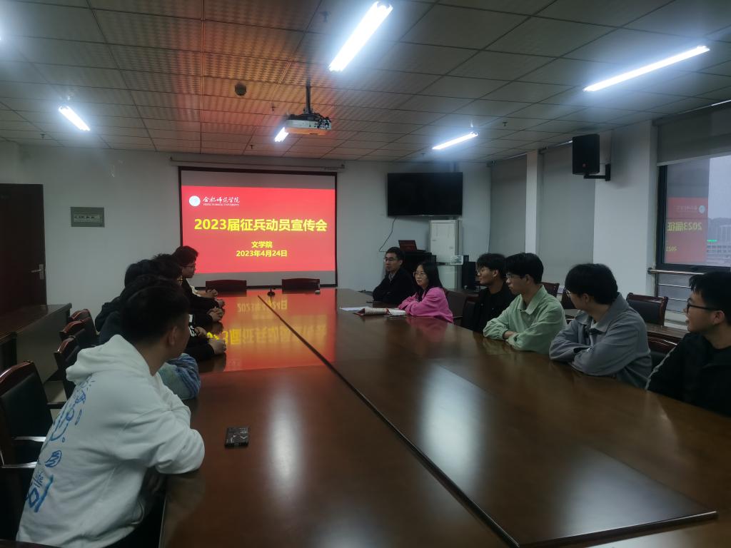 4月24日,3003新葡官方网站在会议室召开2023届征兵宣传。3003新葡官方网站2023届毕业班男生、辅导员参加本次宣传会。