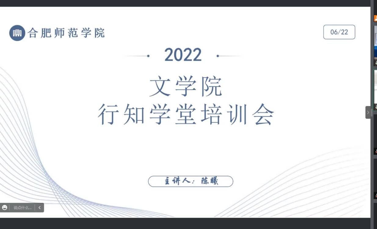 大会第二项,2021年优秀行知学堂负责人陈曦同学进行经验分享。她从活动组织、课程设计、注意事项等方面对即将开展行知学堂的小先生们进行培训,并为他们答疑解惑。