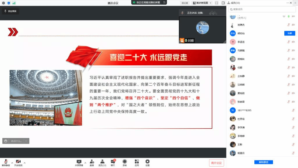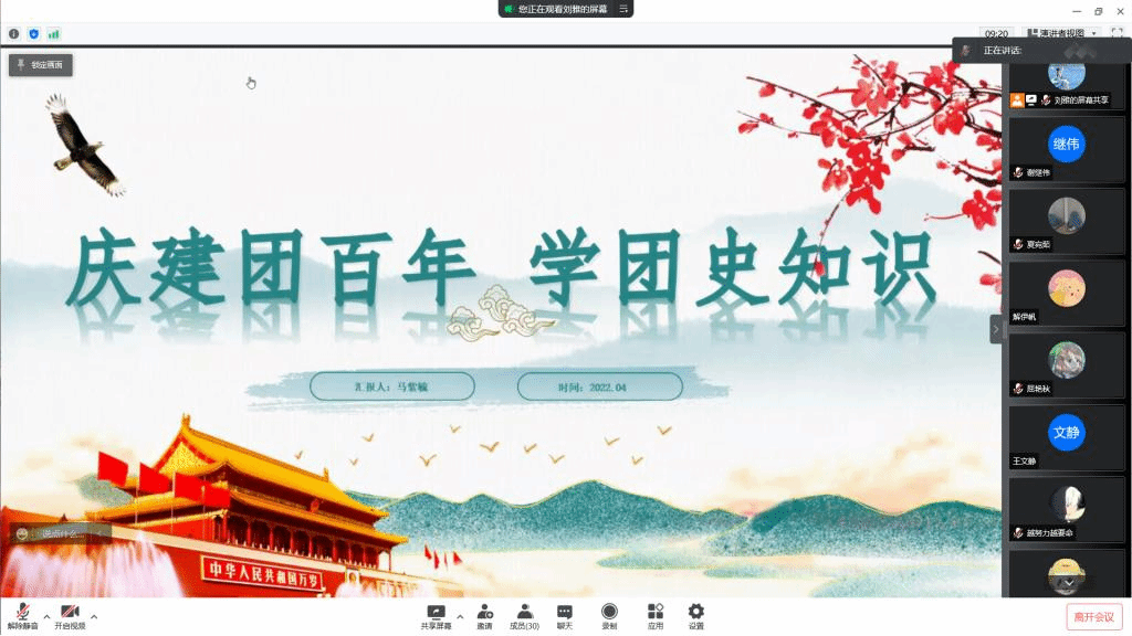 为响应“喜迎二十大、永远跟党走、奋进新征程”主题教育实践活动安排,同时提高班级党团凝聚力,推进党史学习教育常态化。3003新葡官方网站2019级编辑出版学班于2022年4月12日召开了主题教育班会,由团支书刘雅,宣传委员马紫毓主持召开,班级51位成员参加了会议。综合考虑到疫情防控与天气等原因,此次会议将以线上的形式开展。