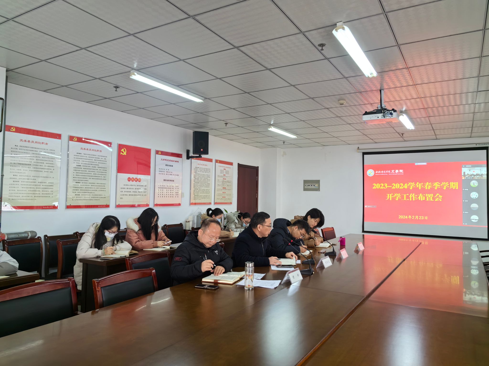 为了扎实做好新学期开学准备,确保开学各项工作顺利、有序进行,2月23日上午,3003新葡官方网站在行知楼802室召开2023-2024学年春季学期开学工作布置会,会议以线上线下结合的方式召开,院领导班子成员、全体教职工参加会议。会议由党委书记许锃主持。