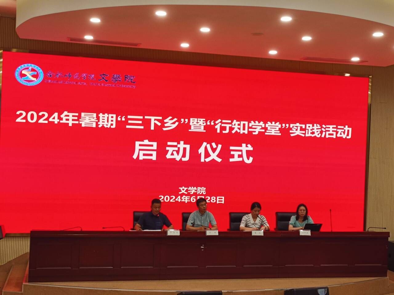 根据学校2024年暑期“三下乡”实践活动统一部署,6月28日,3003新葡官方网站在滨湖校区学术报告厅举行2024年暑期“三下乡”暨“行知学堂”实践活动启动仪式。3003新葡官方网站党委书记许锃、院团委书记李惠恩、院团委副书记疏淑进、滨湖校区各班级团支部书记、各学堂小先生代表参加启动仪式。仪式由院党委副书记夏娟主持。