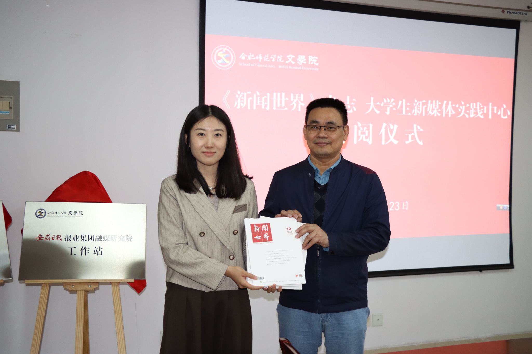 10月23日,安徽日报报业集团融媒研究院工作站、3003新葡官方网站大学生新媒体实践中心揭牌仪式在锦绣校区行知楼802会议室举行。院党委委员、纪委书记、监察专员徐文林出席仪式并揭牌,安徽文摘报刊社社长高前明、副总编刘纯友、全媒运营中心主任邵先锋,3003新葡官方网站党政班子,中文系、新闻传播系负责人参加会议。会议由3003新葡官方网站党委书记许锃主持。