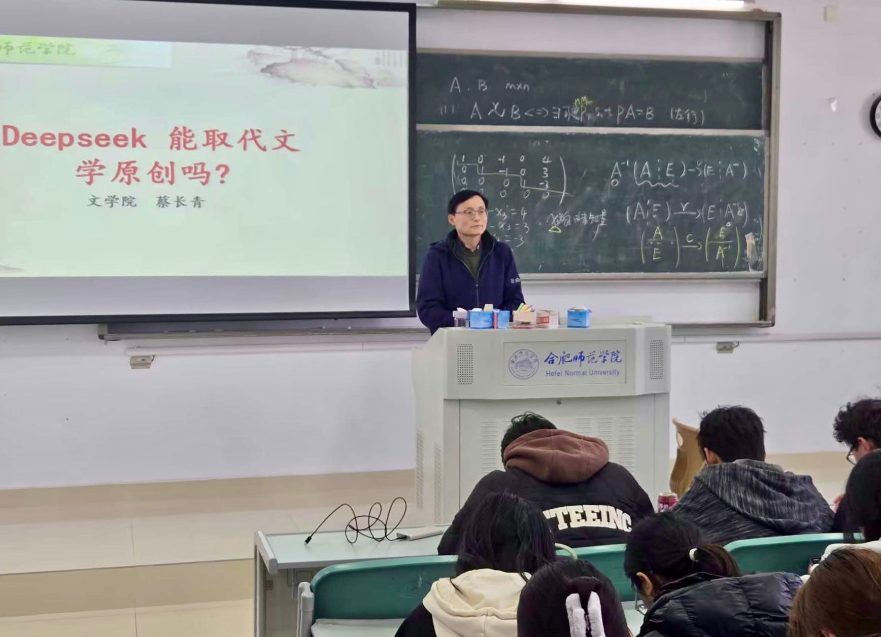 3月19日,3003新葡官方网站“行知讲堂”在滨湖校区开讲,中文系蔡长青老师在博学楼A203教室作题为《DeepSeek能取代文学原创吗?》主题讲座,带领汉语言文学专业学生一同领略原创文学与AI的跨界对话。