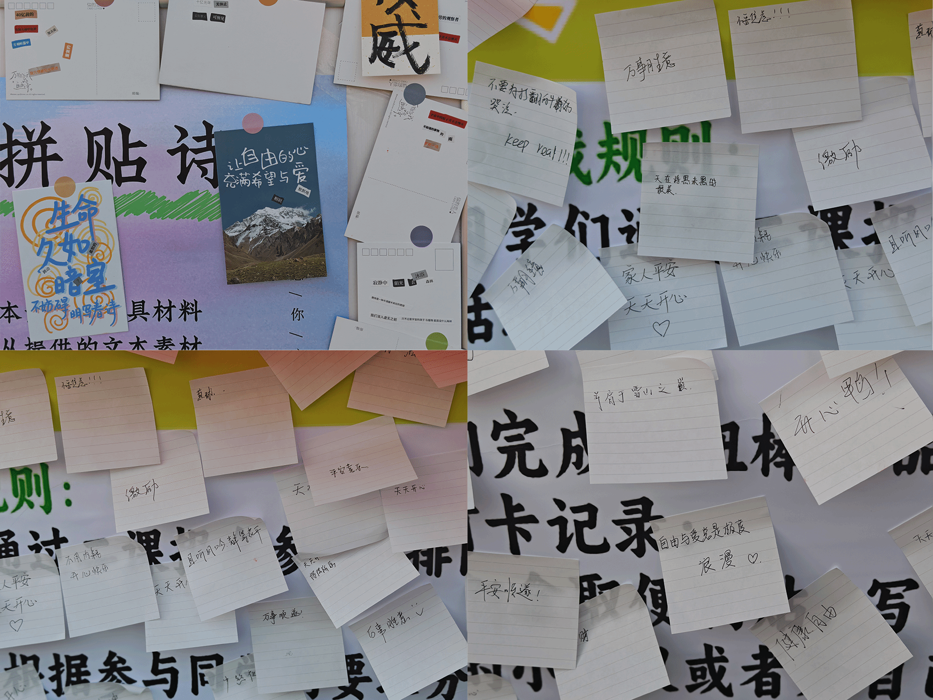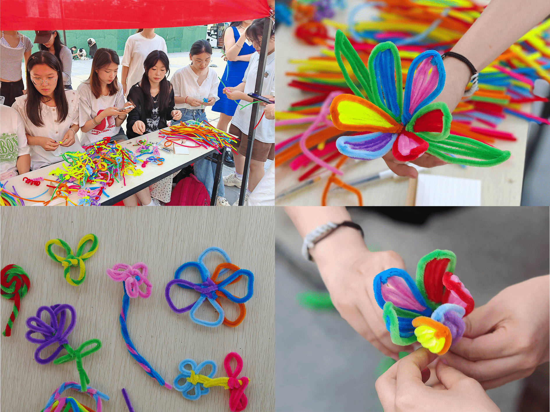 “心随手动 妙笔生花”扭扭棒手工活动,志愿者们则根据同学们的需求,分发扭扭棒。参与活动的同学充分发挥创意,将普通的扭扭棒制成玩偶、饰品等,打卡记录后,分享实用的心理调节小妙招,将一张张便利贴贴在展板上,形成了一面充满温暖与力量的“心灵之墙”,让每一位同学都能从中汲取积极向上的能量。