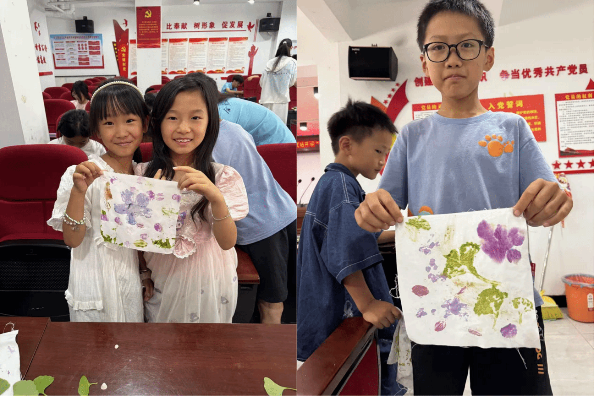这节看似简单的植物拓染课,其意义远不止于完成一件手工作品。它是南华社区“行知学堂”践行陶行知先生“生活即教育”“社会即学校”“教学做合一”教育理念的生动缩影。在“小先生制”的独特模式下,“小先生”在服务社区、引导孩童的过程中,自身也得到了极大的锻炼和成长,实现了知识的输出、责任感的培养和领导力的提升,这本身就是“行知合一”的双向奔赴。也为孩子们打开了一扇感知自然与艺术的神奇之门。