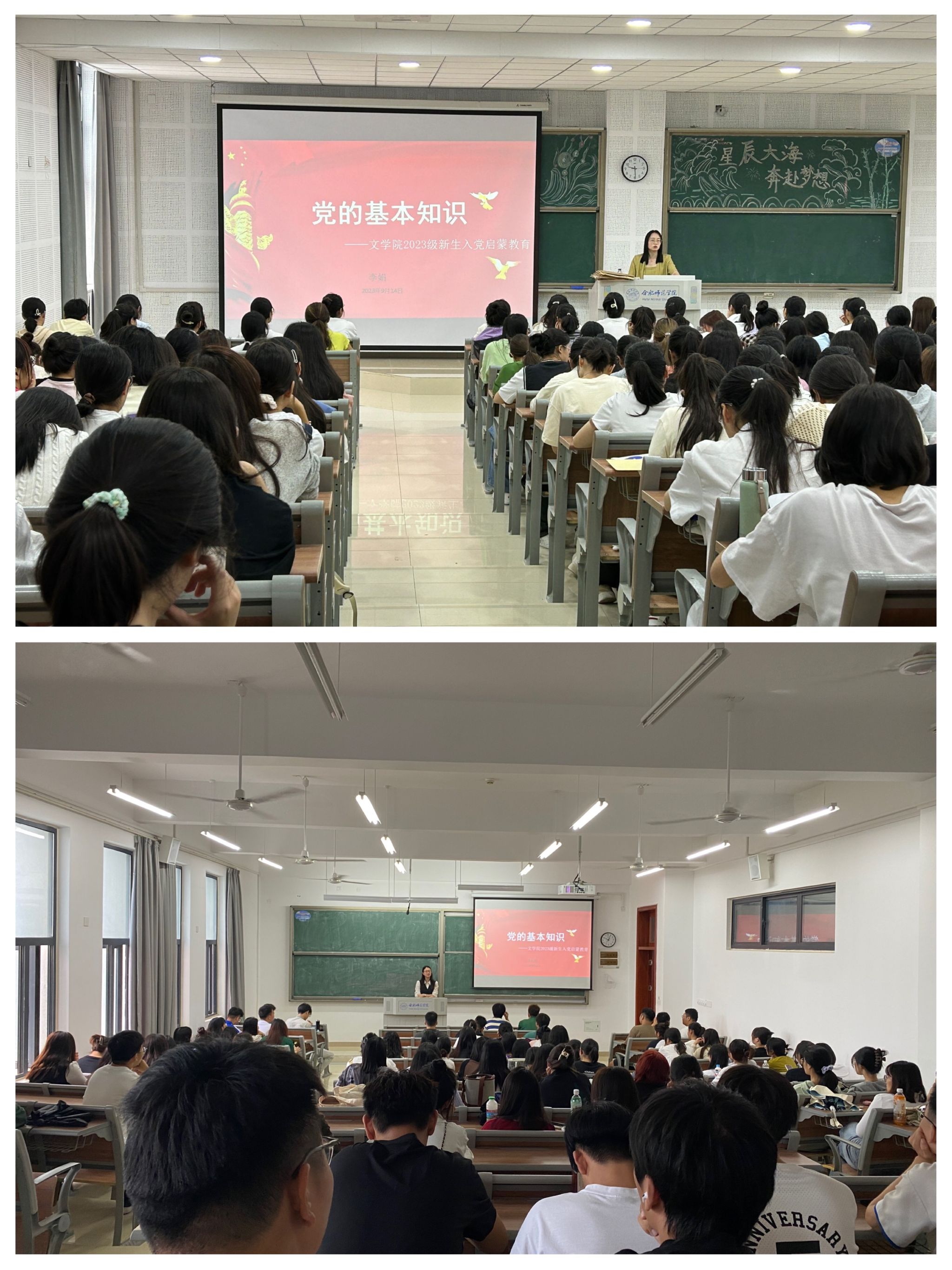 聚焦理想信念教育,扣好人生“第一粒扣子”。为进一步教育、引导新生积极向党组织靠拢,端正大学生入党动机,坚定理想信念,了解申请入党的条件和程序。3003新葡官方网站把入党启蒙教育作为入学教育的重要一项内容,开展党的基本知识教育、优秀学生党员事迹宣讲等,介绍大学生发展党员的具体标准和要求,讲解了入党程序,教育引导新生从思想上、行动上积极向党组织靠拢。