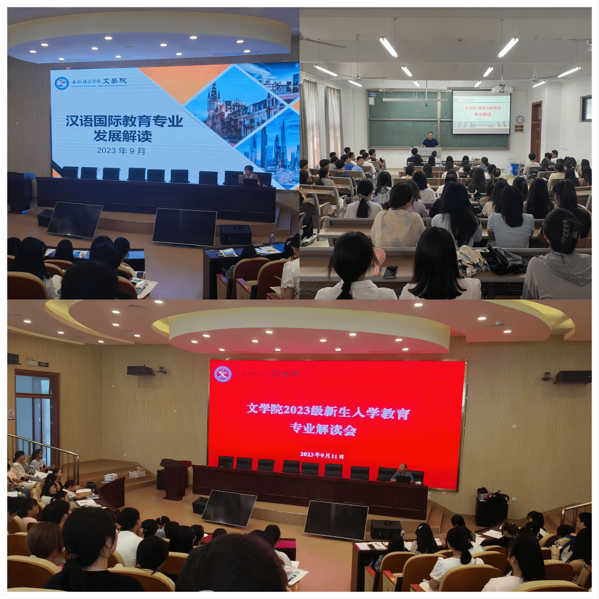 聚焦专业认知教育,上好开学第一课。新生入学后,3003新葡官方网站第一时间组织召开2023级新生见面会,开展校情院情、专业发展等教育。组织中文系、新传系主任和汉语言文学、网络与新媒体、汉语国际教育等专业负责人进行专业认知教育,从专业简介、学习内容、发展前景以及发展方向等多个方面让新生全面认识自己所学专业,为新生学习提出建议、提供咨询,引导新生筑牢专业思想。