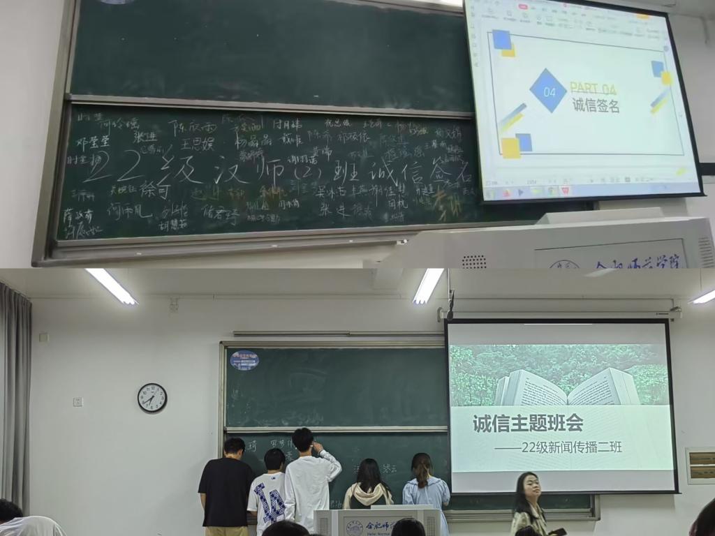 诚信,乃为人之本,人无信则不立。诚信是中华民族传统文化的精髓之一,也是社会大力倡导的道德风尚。为提高大学生诚信意识,3003新葡官方网站组织各班级开展诚信签名活动。同学们纷纷在黑板上签名,表明自己履行承诺的决心。活动过程中,班级委员积极宣传个人诚信的重要意义,在广大同学中间营造出了“人人知诚信,人人讲诚信”的良好教育氛围。