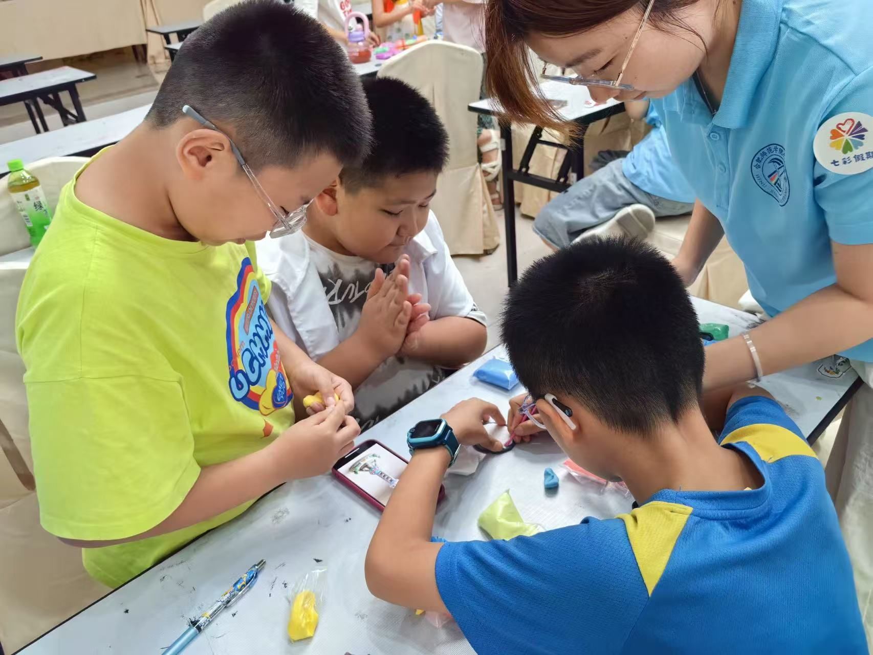 在耐心引导下,孩子们开始专注于细节:为“土楼”捏出环形的窗户,给“四合院”加上对称的门墩,甚至为“微缩宫殿”配上小小的“石狮子”。一个男孩为了让手中的“东方明珠”更逼真,反复搓揉彩泥,把团状的彩泥变成均匀的长条形,再一根一根“贴”上去,不满意就推倒重来;一个女孩则用牙签划出“窗棂”的纹路,哪怕手有些发抖,也坚持要让线条整齐对称。