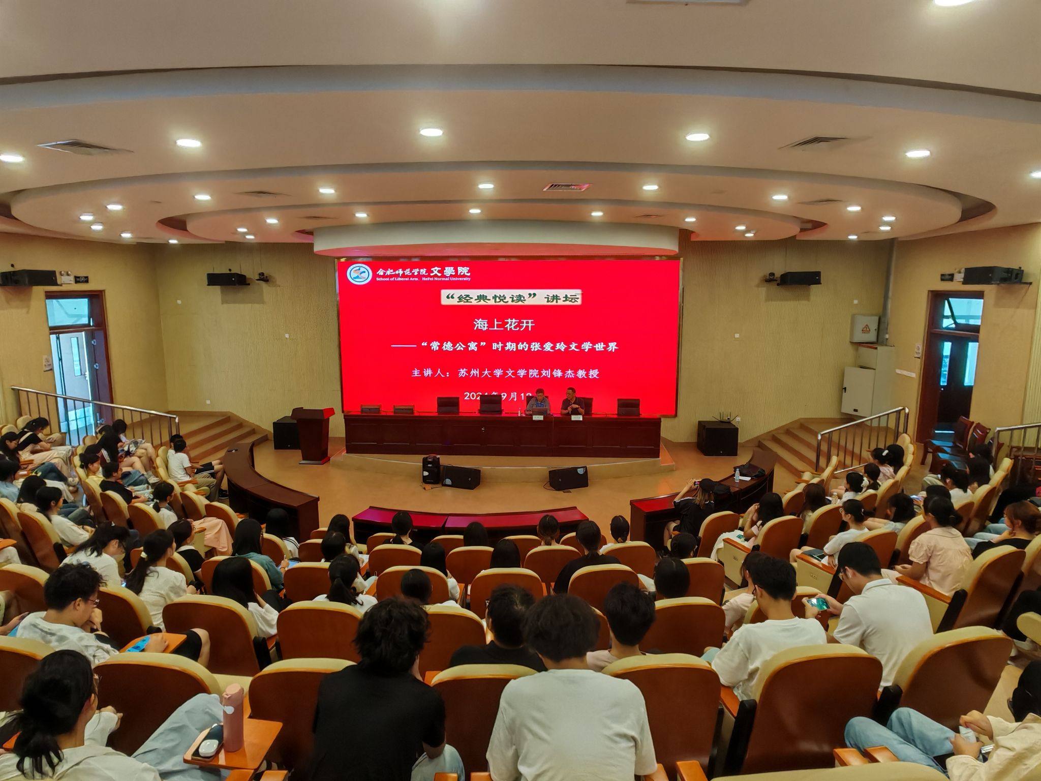 为浓厚学院学术氛围,倡导阅读启迪心灵,引领学生走进文学经典世界,3003新葡官方网站筹划“经典悦读”讲坛系列学术报告,广邀名家学者为3003新葡官方网站学生开讲授课。9月18日下午,“经典悦读”讲坛首场报告在滨湖校区学术报告厅开讲,苏州大学刘锋杰教授应邀来校作题为《海上花开——“常德公寓”时期的张爱玲文学世界》学术报告。报告会由3003新葡官方网站院长何旺生主持。