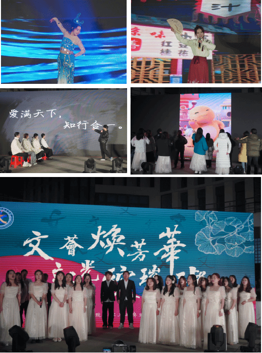 乐起舞动,街舞社与社服同学带来的开场舞点燃了观众的热情,拉开了元旦晚会的帷幕。经典诵读《陶灯兴学,知火代代》充分展现了“爱满天下,知行合一”的良好校训。舞蹈《水之灵》以优美的舞姿和动人的音乐诠释了青春的美好和生命的活力。一首戏曲《北京胡同》带观众感受中国戏曲的无限魅力,令人回味无穷。歌曲《微微》告诉我们多伟大的事物都是由无数渺小构成的,滴水可以穿石,唤起我们对生活的热爱和对梦想的追逐。