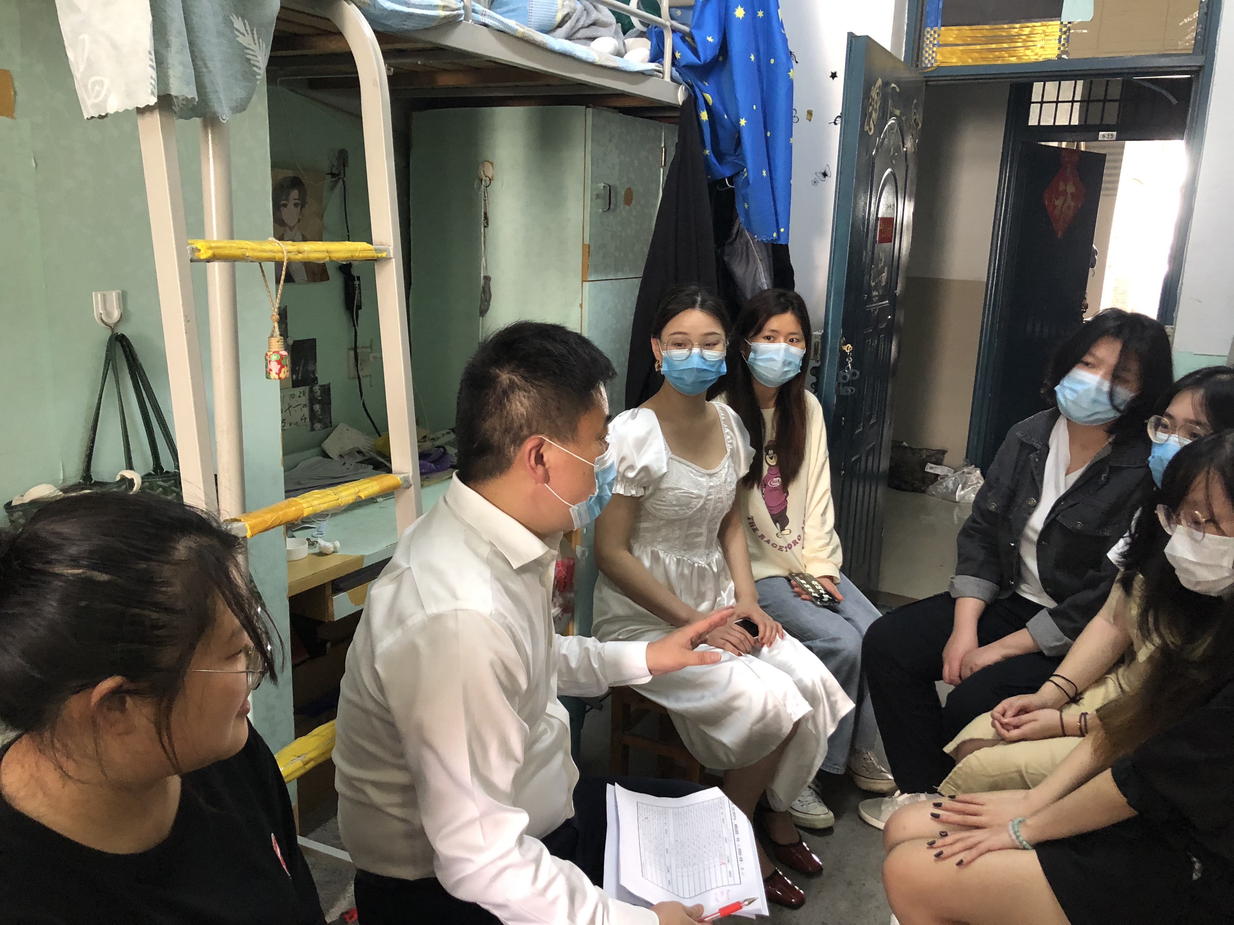 3月期间,院党委副书记陈好和毕业班辅导员多次深入毕业生宿舍。走访过程中,陈好细致询问了同学们目前的生活状况和思想动态,提醒学生注意防诈骗、用电安全和人身安全等。他希望大家理解学校由于疫情防控所做的有关规定,严格按照要求进行学习和各项工作的进行,努力营造健康安全的校园生活。同时在就业上,针对学生在考研、考公考编以及面试工作等问题上,陈好详细讲解就业细则和相关政策,为学生排忧解难。