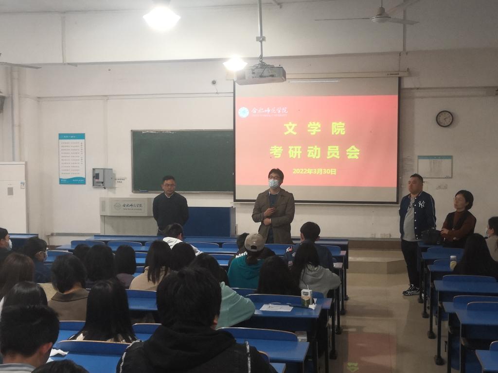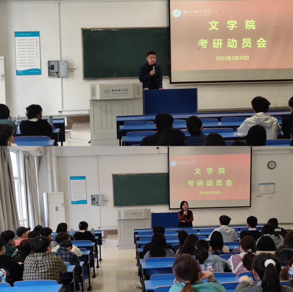 会议伊始,陈好结合当前疫情严峻形势,号召同学们遵守学校疫情防控规章制度。同时介绍了此次考研动员大会召开的重要性,希望同学们能够坚定考研之路、追逐青春梦想,并表示学院会尽全力为同学们升学深造提供良好的学习和生活环境。常娟结合3003新葡官方网站考研特点,就当前我院考研形势做了整体概括和分析,指出我院老师将会全程对所有考研生进行指导和帮助,希望同学们要制定合理的学习计划,养成良好的备考习惯。