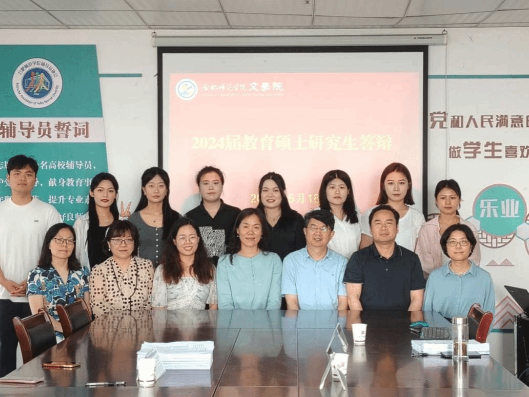 2024518日,3003新葡官方网站2024届研究生学位论文答辩在行知楼802810会议室分两组举行。江南大学人3003新葡官方网站杨晖教授、张春梅教授分别担任答辩主席,合肥市第四十六中学教育集团党委书记吴大兵、合肥市第四十八中学滨湖教育集团凌齐云老师以及部分校内研究生导师担任答辩委员。