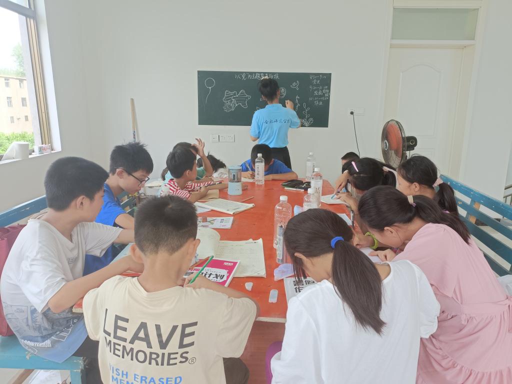 在比赛活动开始前,小先生马茹茹先是明确了此次手抄报比赛的主题,讲述了关于党的故事及发展历程,并于黑板上示范了可以借鉴的素材,让不同年级的小学员都有借鉴和创作的空间。前期准备工作做完后,小学员们开始了紧张又有趣的手抄报比赛活动。