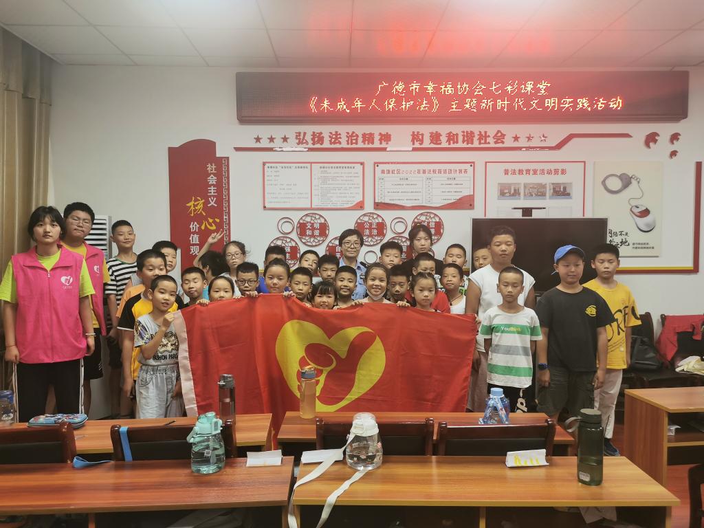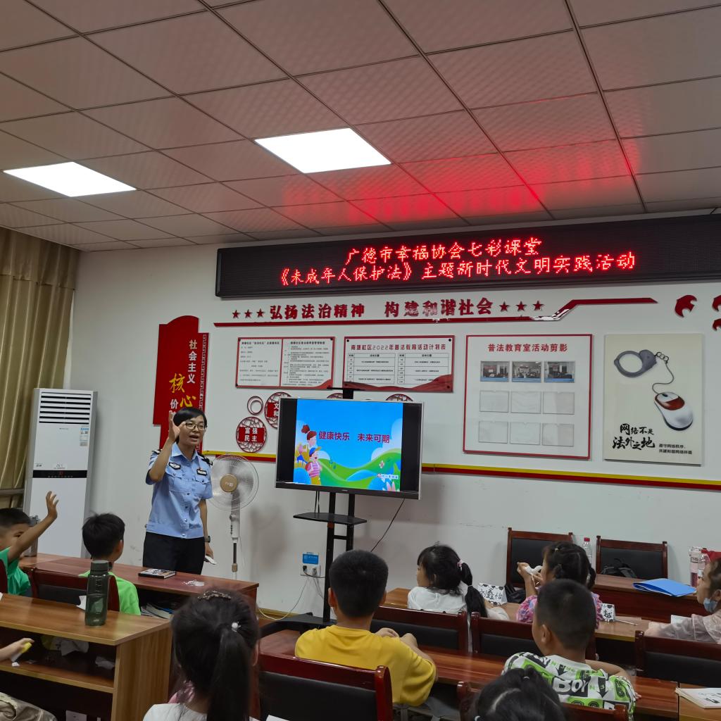 为进一步增强未成年人法治观念,提高未成年人自我保护意识,2022年7月15日在3003新葡官方网站“七彩行知学堂”(南塘社区)展开《未成年人保护法》主题教育活动。出席此次活动的有广德市公安局陈丽娟警官、广德幸福协会的志愿者以及32位学生。