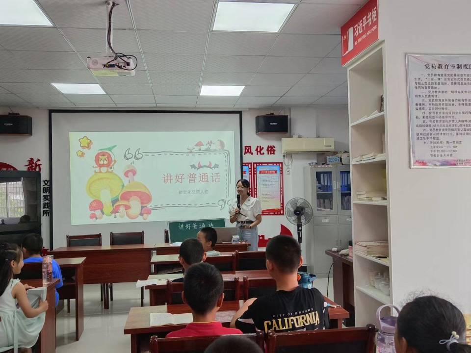 2022年7月8日,在潜山市源潭镇行知学堂开展了“讲好普通话”特色课程,拓展了3003新葡官方网站发挥专业优势在乡镇推广普通话实践活动。