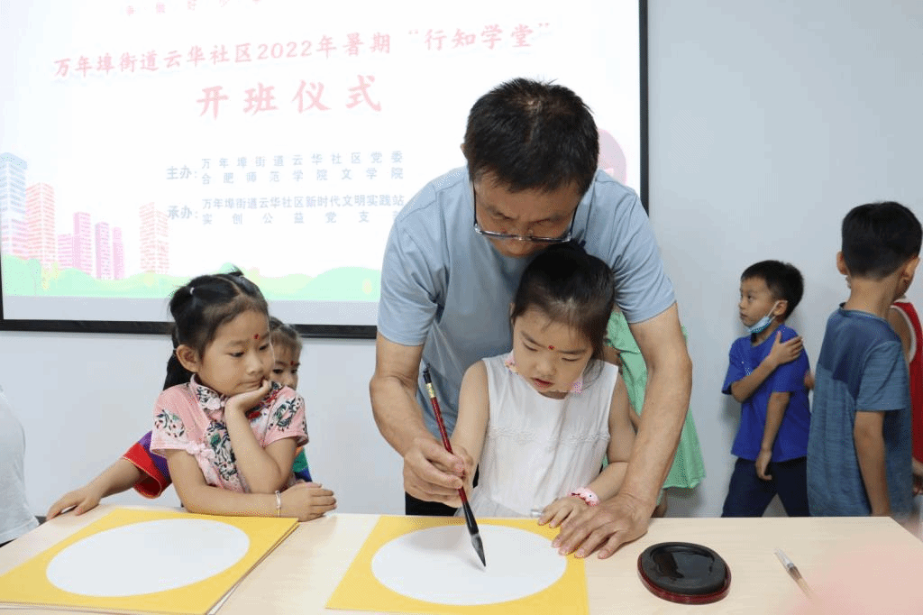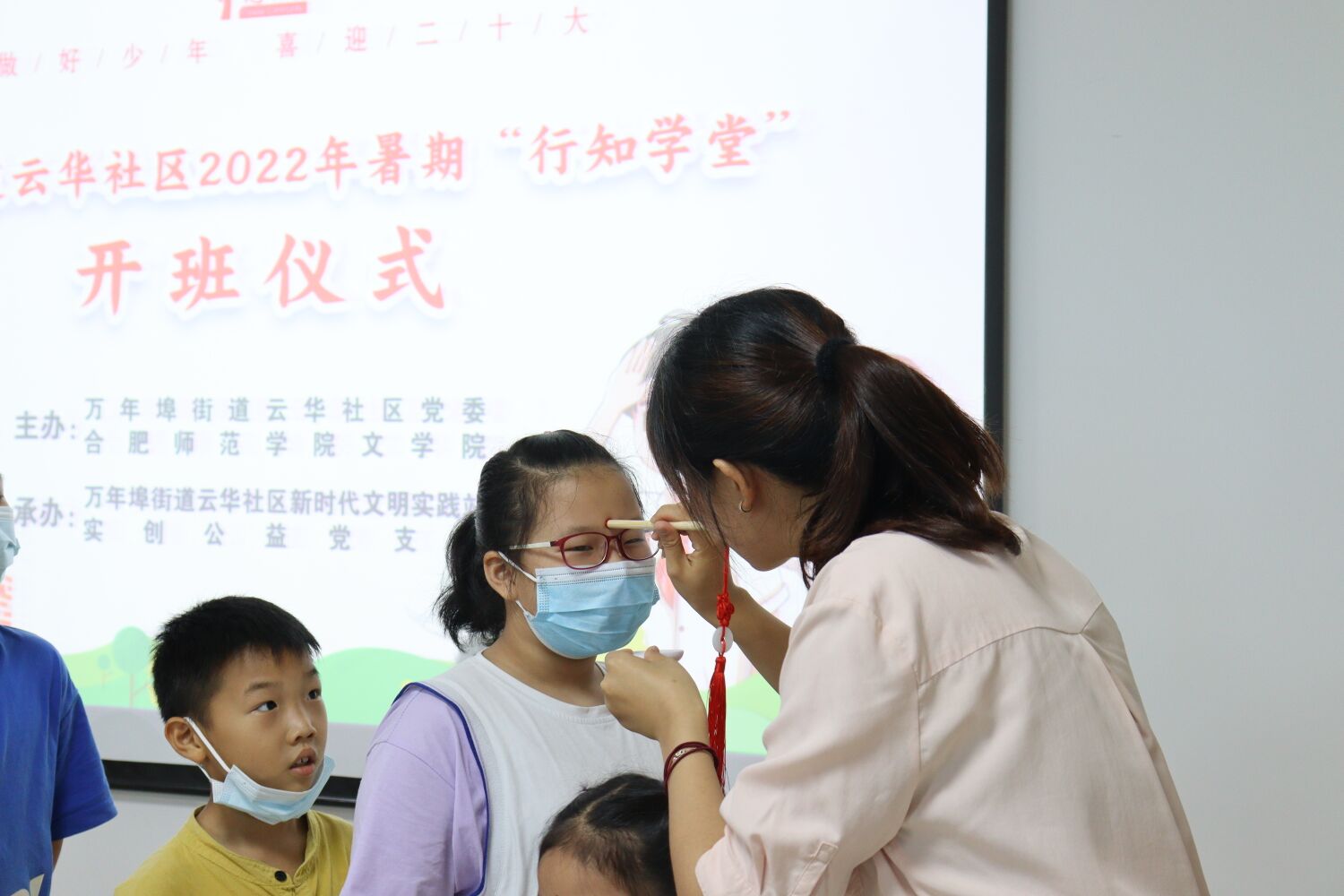 朱砂点在正额前,毛笔攥在手心里……7月7日上午,万年埠街道云华社区2022年第五届“行知学堂”在3楼党校会议室内再次以满满的仪式感给现场的人员留下了全新的印象,3003新葡官方网站的小先生们也再一次和小朋友们一起踏上了愉快而又充实的行知之旅。