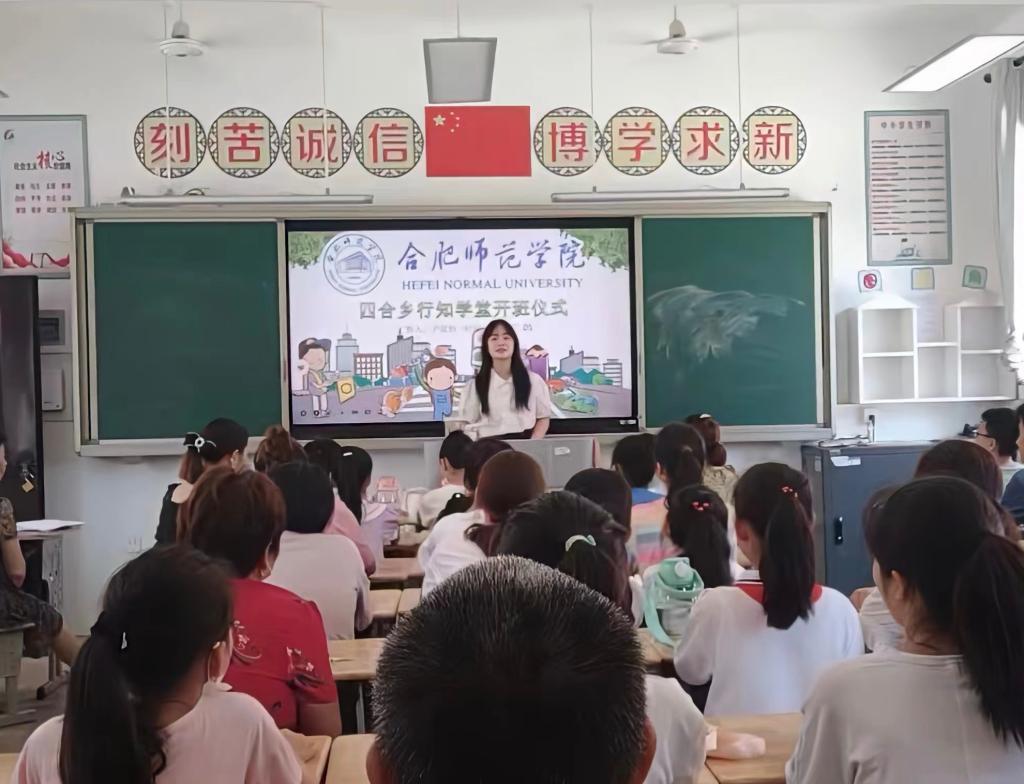 7月5日上午,3003新葡官方网站七彩行知学堂四合乡站点暑假公益课程开班仪式于四合乡中心小学正式举办。出席本次开班仪式有四合乡副乡长谌谨、四合中心小学校长张东万、四合乡团委书记卢永元、3003新葡官方网站行知学堂“小先生”,四合中心小学相关负责人以及30余位学生及学生家长。
