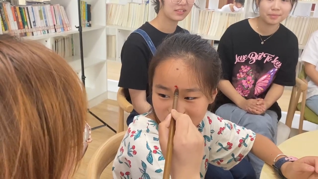 之后,沐巢行知学堂的十位小先生也依次上台进行了简单的自我介绍包括自己所教授的课程。接着周迎欣又向小学员们介绍了开笔启蒙礼,她带来了红色颜料、毛笔、宣纸等工具。“开笔礼”起源于春秋孔子时代,它是中国传统上对少儿开始识字习礼仪式的称谓,俗称“破蒙”,是古时人生四大礼之一。小学员们学得有模有样,在小先生们的带领下进行了正衣冠、朱砂开智、击鼓启智和启智描红的礼仪流程。现场气氛高涨,启蒙礼的进行彰显了启蒙养正、启发心智的理念,帮助孩子们传承和弘扬尊师孝亲、崇德立志、仁爱处世的中华文化价值观念。