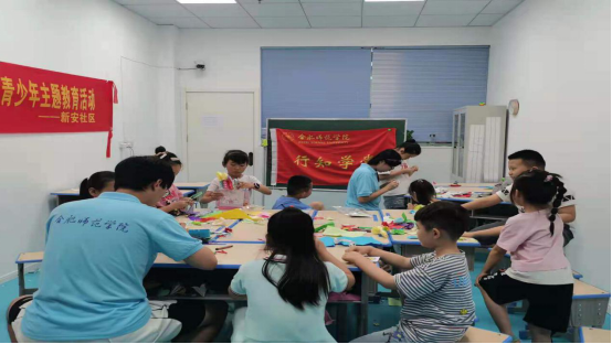 结班仪式上,学堂负责人葛伊凡对本次“行知学堂”暑期实践活动进行总结,她表示,从开班到结束,“小先生”与小学员共同拥有了一段虽然短暂却充满快乐的时光,对彼此也有了深厚的感情,每天的课程安排的紧凑而科学,“小先生”得到了成长锻炼,小学员也收获了不少知识,这是一次美好的经历。随后,“小先生”与小学员进行了最后一次活动,一起齐心协力制作手工,为本次“行知学堂”手工制作纪念品。