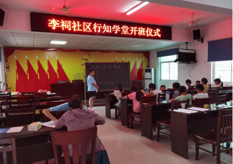 开班仪式上,学堂负责人对学堂建设背景与主要课程内容进行了介绍,并表示在未来二十天将认真安排好学堂课程,组织好教学活动,争取把李祠“行知学堂”办好。社区负责人及家长代表对“小先生”们的到来表示欢迎与感谢,并对行知学堂暑期公益实践活动给予了充分的肯定。