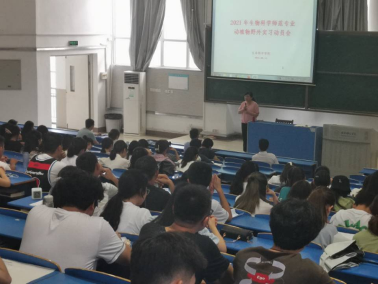 本网讯 6月15日中午12:30,生命科学学院在逸夫楼西阶梯教室3召开2021学年动植物学野外实习动员大会,生科院院长徐忠东、副院长朱桂兰及实习相关指导教师和辅导员黄洁出席了会议,全体2019级和2020级生物科学专业学生参加了动员会。会议由实习实训中心主任沈章军主持。