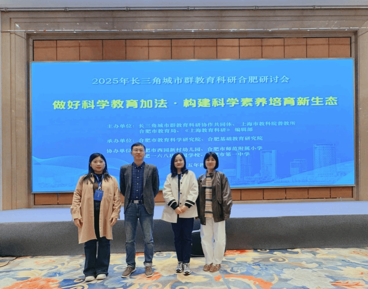 2025年4月1日至3日,由合肥市教育局等单位主办、合肥基础教育研究院承办的2025年“做好科学教育加法·构建科学素养培育新生态”长三角城市群教育科研研讨会,在合肥丰大国际大酒店隆重举行。mile米乐集团官网科学教育专业教师团队应邀全程参与此次学术盛会,与来自长三角三省一市的300余名教育专家、科研人员和一线教师共话科学教育创新发展。