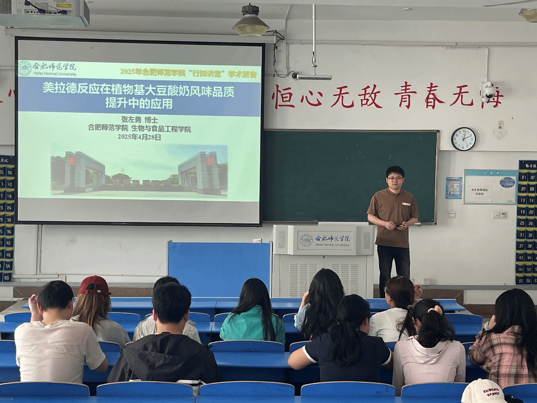 4月28日下午,mile米乐集团官网张左勇博士在锦绣校区逸夫楼A306教室作题为《美拉德反应在植物基大豆酸奶风味品质提升中的应用研究》行知讲座。学院副院长陈金武教授现场指导,食品质量与安全专业学生代表参加了此次报告。