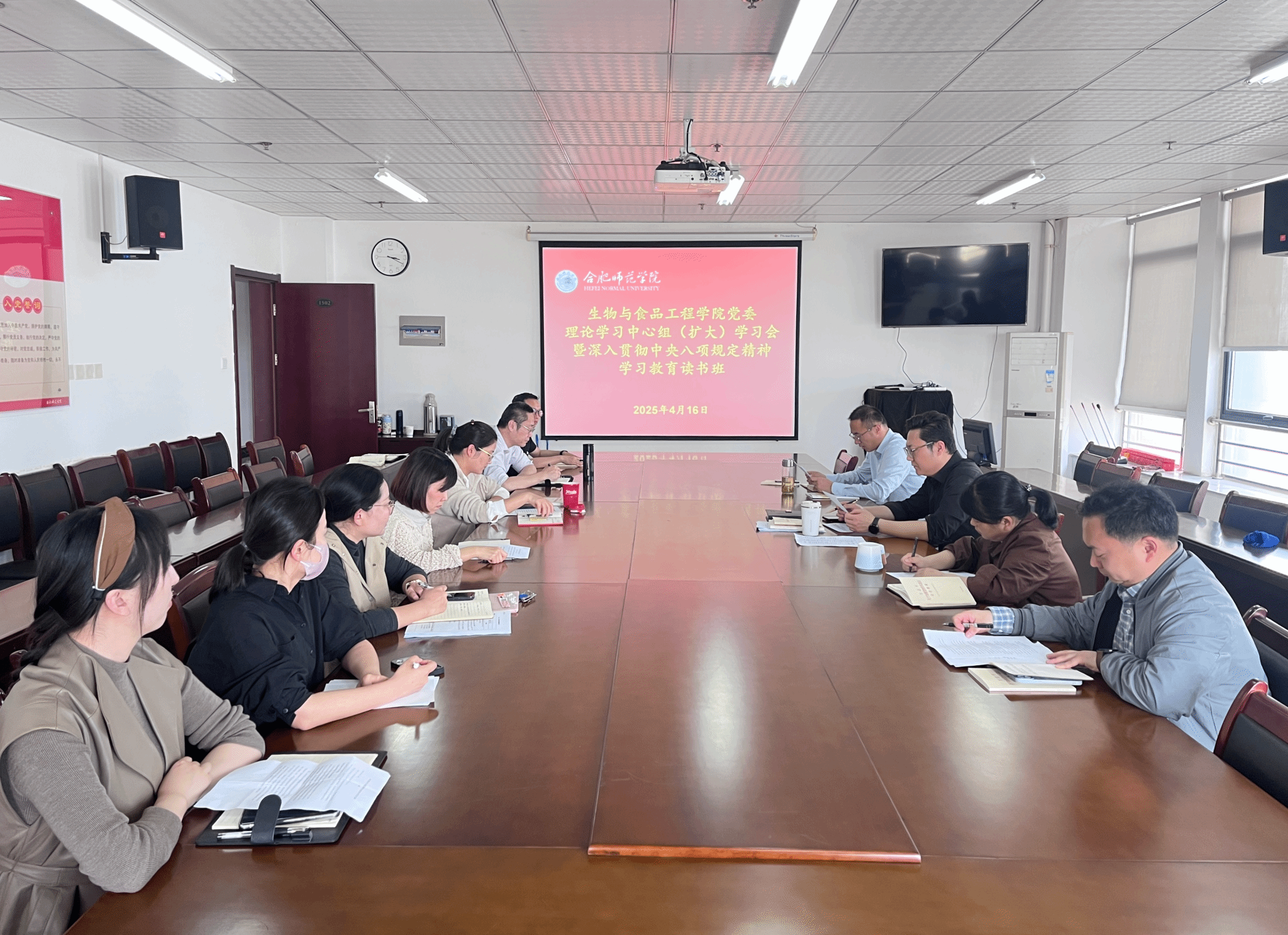 4月16日下午,mile米乐集团官网在行知楼1502会议室举办党委理论学习中心组(扩大)学习会暨深入贯彻中央八项规定精神学习教育读书班,党委理论学习中心组全体成员、各党支部书记参加学习,会议由院党委书记马喆主持。